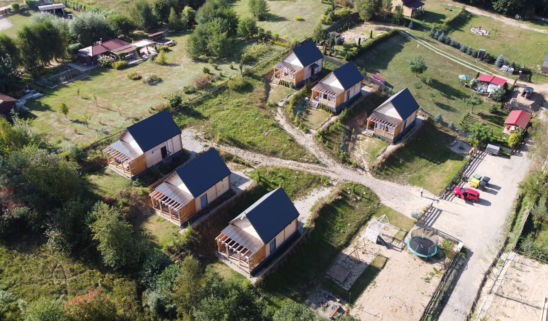 Każdy Domek jest przygotowany dla max. 6 osób i ma ok.55m2 plus taras wyposażony w wygodną sofę rattanową z dużym stołem. Parking w cenie oraz możliwość ładowania samochodów elektrycznych za dodatkową opłatą.